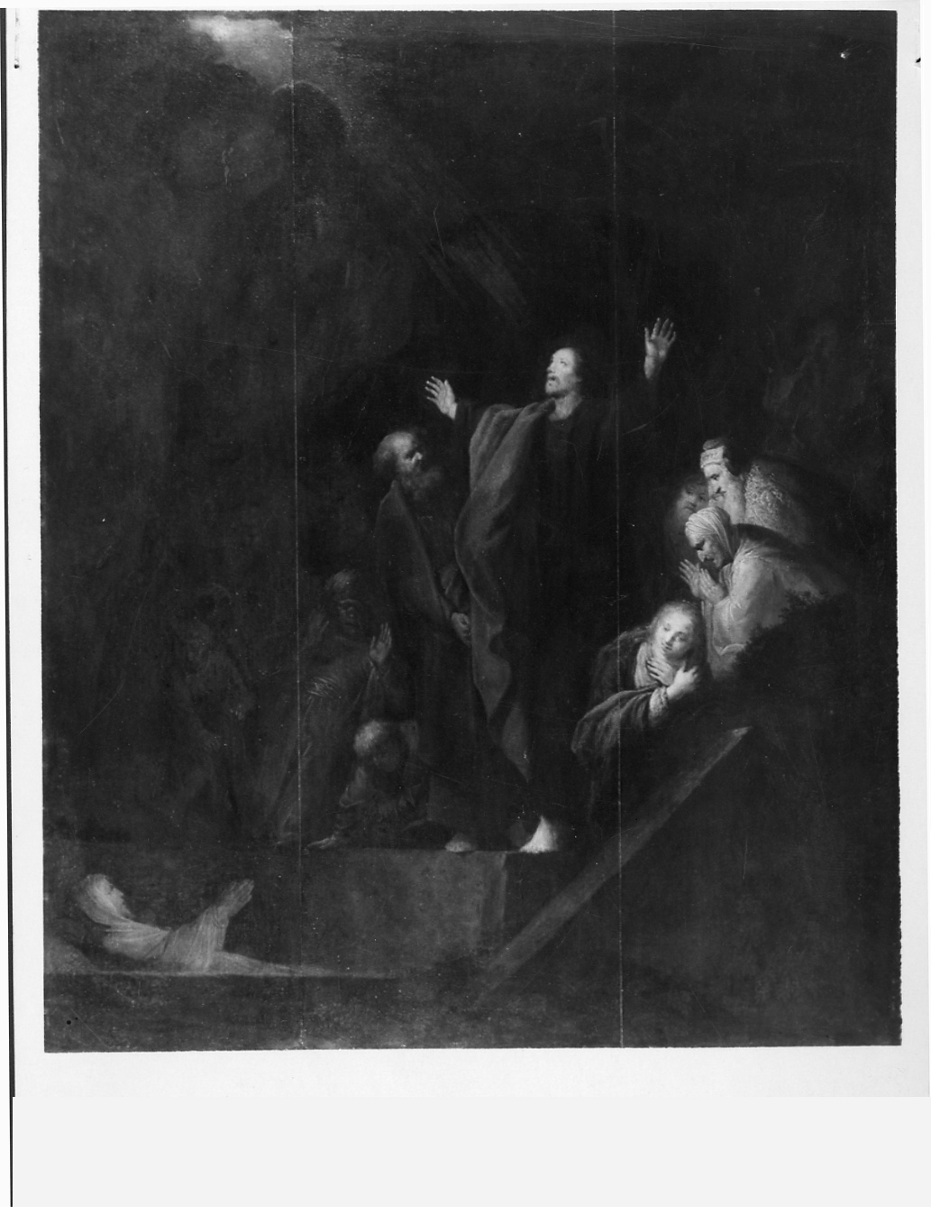 - NOTIZIE STORICO CRITICHE Si ritiene che l'opera, datata 1632 e firmata da Pieter De Grebber, sia ispirata al dipinto di Rembrandt dallo stesso tema, del 1630-31 circa (Los Angeles County Museum of Art). Le corrispondenze più evidenti risiedono nel personaggio di Lazzaro che si solleva dalla bara e nel gesto drammatico di Cristo. Il dipinto in esame fu utilizzato probabilmente come pala d’altare per una delle chiese cattoliche clandestine di Haarlem o per un altare domestico. Lo stesso De Grebber era un cattolico devoto e riceveva molte commissioni dai cattolici di Haarlem. La data del quadro è stata anche letta come 1637, ma la somiglianza stilistica con la Discesa dalla croce ad Amsterdam (Rijksmuseum) del 1633 rende più attendibile il 1632. Il dipinto è citato nel Repertory of Dutch and Flemish Painting in Italian Public Collection. III Piedmont and Valle d'Aosta, 2011, con ampia bibliografia precedente e sintesi della storia collezionistica. Sul retro della tavola compare un biglietto con sigillo datato 1734 a firma del notaio veneziano Giuseppe Mozzoni; "Addì 15 febraro 1734 fu da me Giuseppe Mozzoni Nodaro veneziano improntato il presente mio sigillo notarile et altro mio sigillo particolare". Ciò consente di riconoscere nell'opera uno dei quadri già in collezione di Cristoforo Bonlini, messi in vendita dal mercante d'arte Giovanni Battista Bodissoni e acquistati a Venezia nel 1737 da Claudio Francesco Beaumont per conto di Carlo Emanuele III