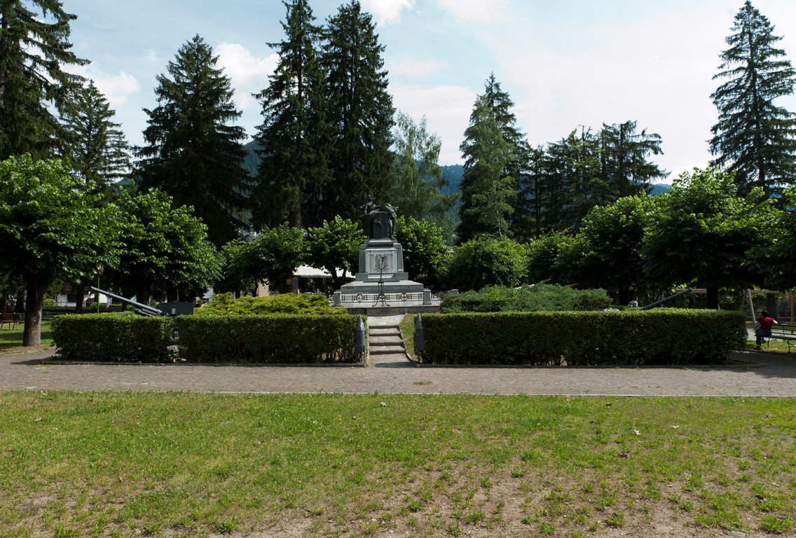 - ISCRIZIONI sul basamento sul fronte principale - SANTA MARIA MAGGIORE / 1915-1918 / BORGNIS GIOVANNI / COVETTA GIACOMO / FAURO MANLIO / FONTI ANTONIO / RIVADATTI CARLO - capitale - a caratteri applicati in bronzo -