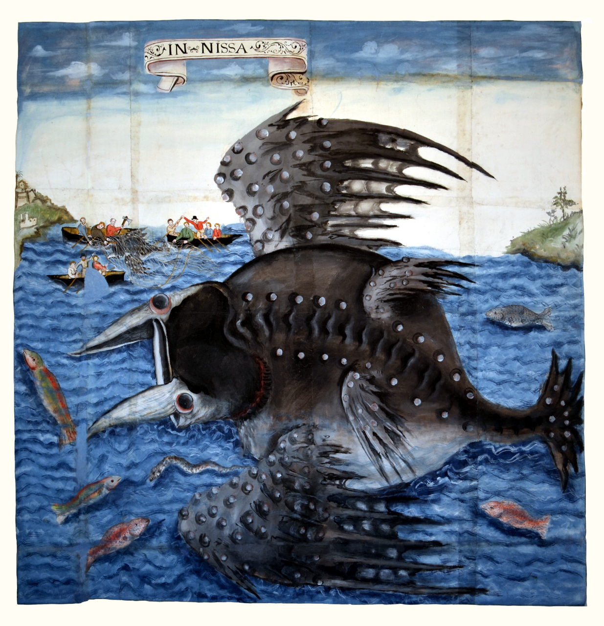 Tavola composta da sedici fogli uniti tra loro. La superficie cartacea è completamente dipinta e riporta la pesca di un esemplare di Mobula nel mare di Nizza. La Mobula è raffigurata sulla superficie dell'acqua circondata da pesci di altre specie. In secondo piano, è invece descritta la pesca della stessa, mentre viene intrappolata nella rete gettata da tre barche di pescatori