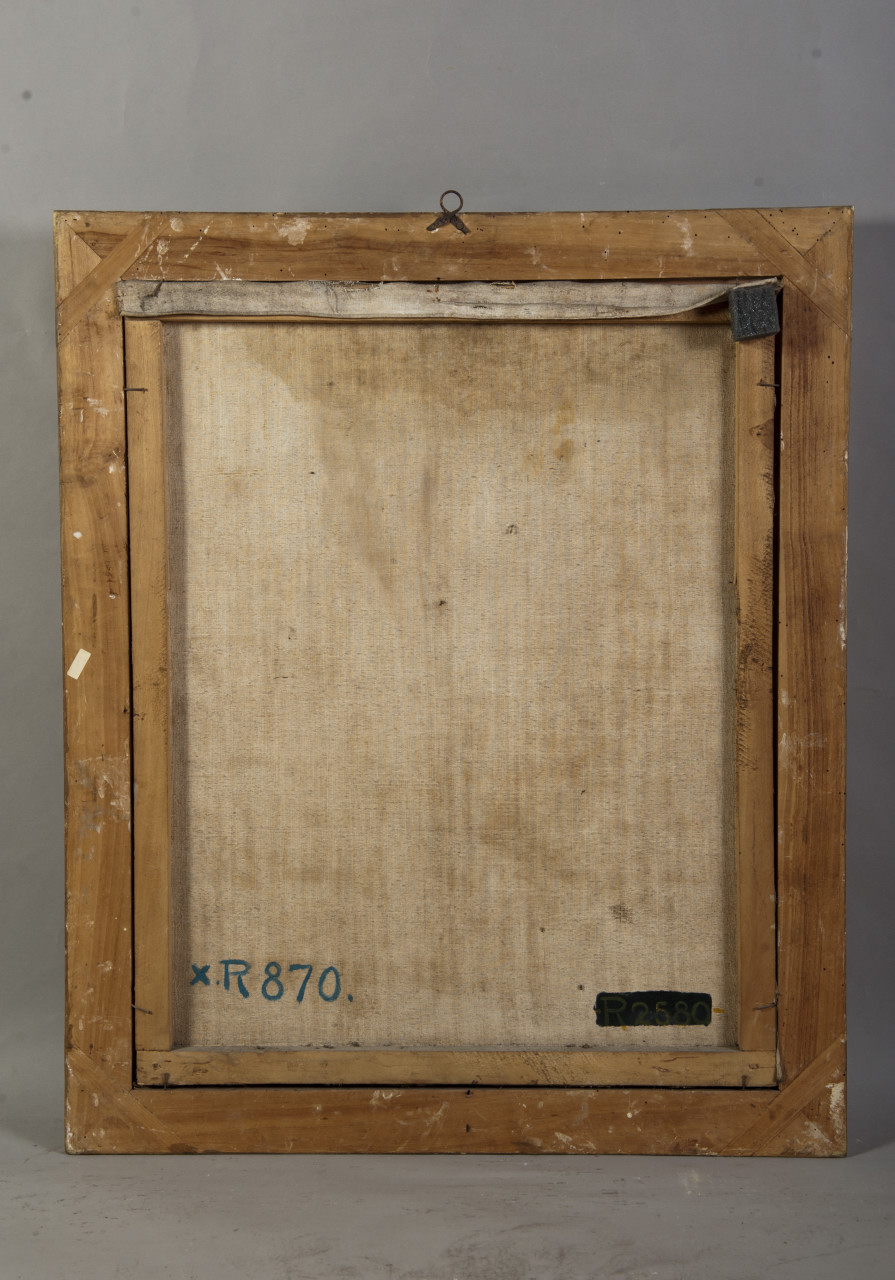 Ritratto femminile in ginocchio, testa quasi di fronte. Indossa un mantello scuro con risvolti d'ermellino, un velo bianco sul capo annodato al collo. La mano destra, appoggiata sull'inginocchiatoio, tiene un libro tenuto aperto dall'indice. La mano sinistra è al petto, parzialmente coperta dal fluire abbondante delle pieghe del velo e del manto. L'inginocchiatoio è coperto da un manto rosso con croci sabaude e fodera di ermellino Ad olio su tela di ignoto. Cornice di legno dorato