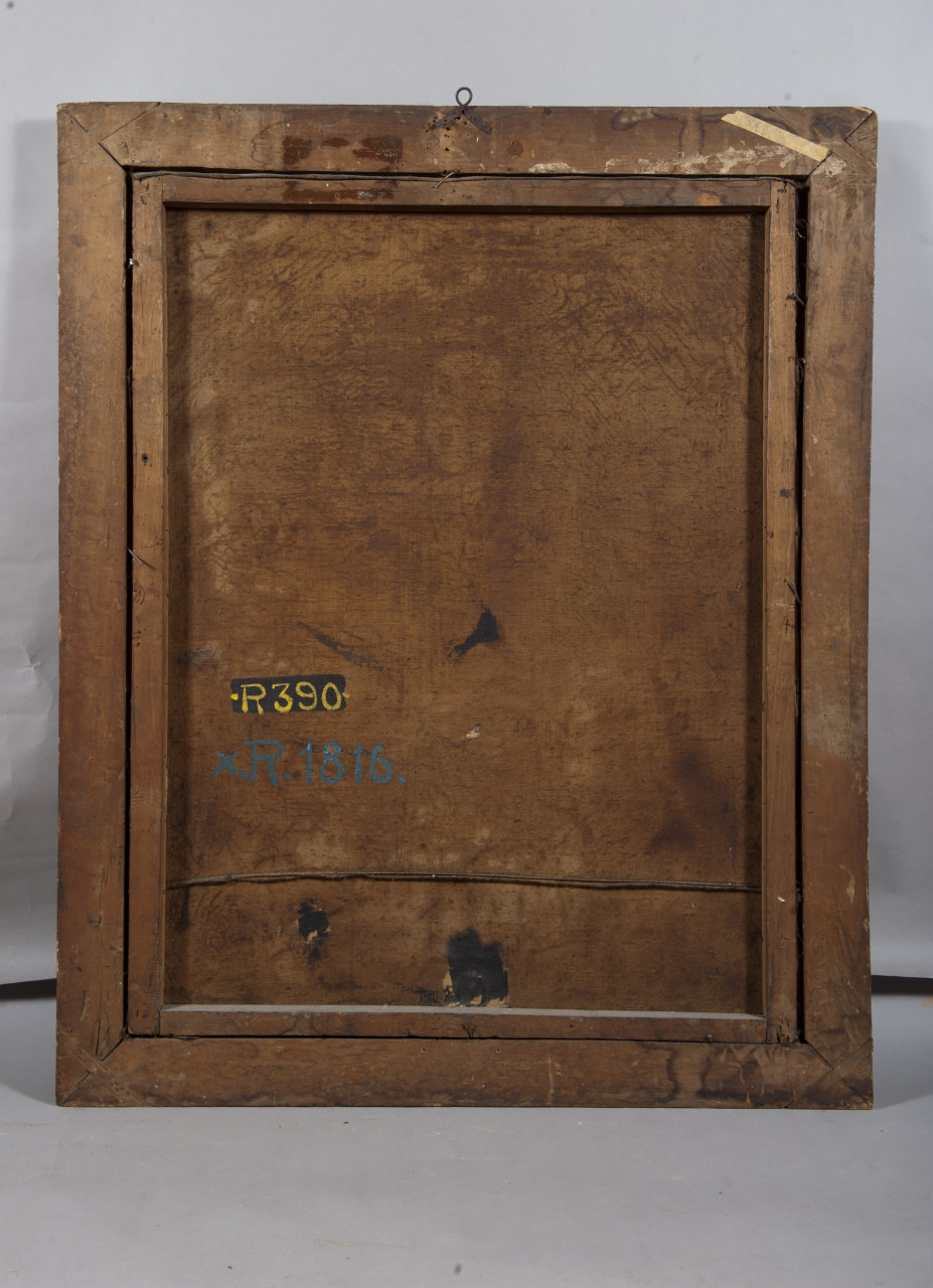 - ISCRIZIONI sul retro, verso il basso a sinistra - X.R. 1816 - stampatello/ numeri arabi - a pennello/ azzurro -