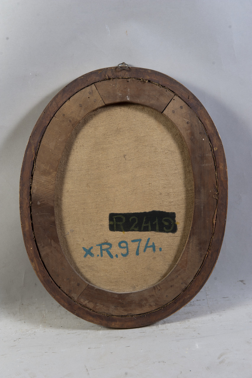 Ritratto maschile in piedi a 1/2 figura, testa leggermente volta a sinistra con parrucca chiara. Indossa una divisa militare scura con risvolti gialli, adorna di spalline, bottoni e alamari in argento, un abito bianco con colletto rosso e jabot di voile chiaro. Porta il collare dell'Ordine della SS. Annunziata e la croce Mauriziana. La mano destra è appoggiata sul fianco e sullo sfondo è rappresentato parte del Castello Reale di Moncalieri. Cornice di legno dorato con fori di tarlo localizzati nella parte destra
