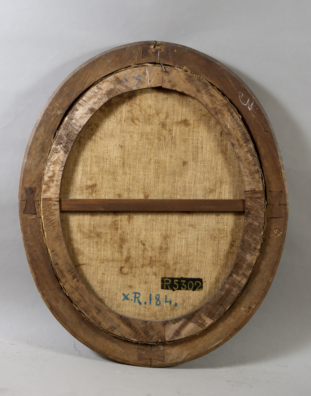 Dipinto ad olio su tela di formato ovale con cornice in legno intagliato e dorato. Carlo Emanuele III di Savoia è ritratto a a 1/2 figura, testa quasi di fronte, in corazza al petto adorna di placca e collare dell'Ordine della Santissima Annunziata, manto rosso foderato d'ermellino. Tiene con la mano vicino alla corona reale