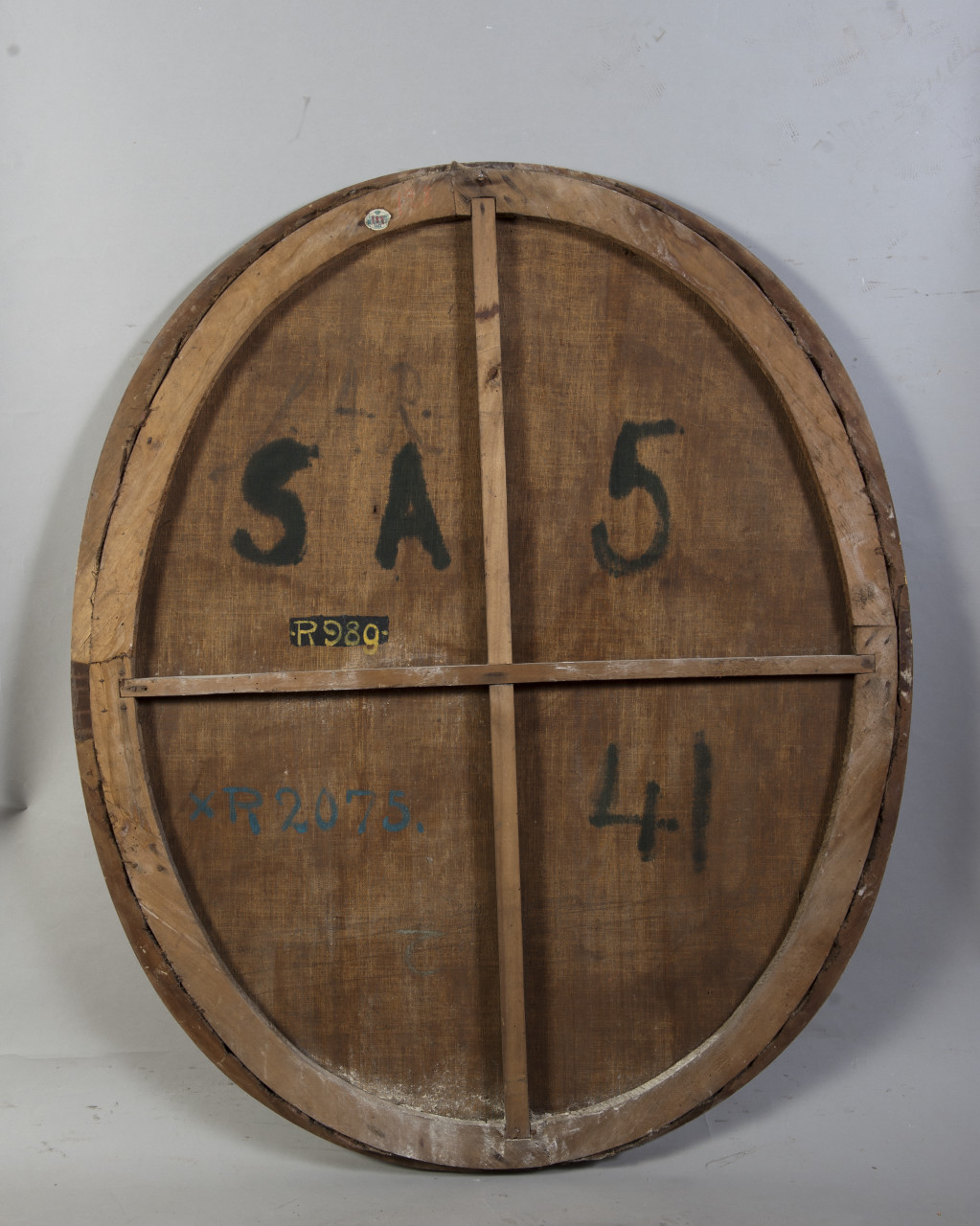- ISCRIZIONI verso, tela, al centro, a sinistra - R 989 (giallo) - maiuscolo/ numeri arabi - a pennello -