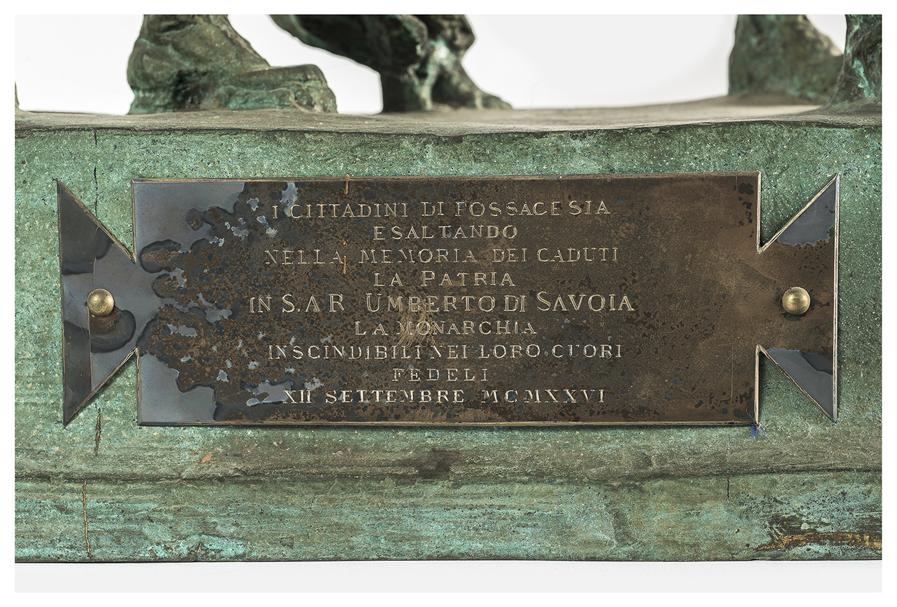- ISCRIZIONI sulla targhetta - I CITTADINI DI FOSSACESIA/ ESALTANDO/ NELLA MEMORIA I CADUTI/ LA PATRIA/ IN S.A.R. UMBERTO DI SAVOIA/ LA MONARCHIA/ INSCINDIBILI NEI LORO CUORI FEDELI/ XII SETTEMBRE MCMXXVI - stampatello - a incisione -