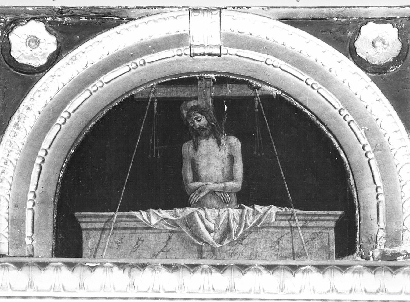 - NOTIZIE STORICO CRITICHE Il trittico, entro ricca cornice dorata, è opera di scuola lombarda dei primi del '500 (datata 1508). Eseguito senz'altro su commissione dei due personaggi raffigurati al centro, il fisico dott. Giovanni Agostino Gusberti e la moglie Elisabetta, come del resto appare nell'iscrizione, doveva essere la pala d'altare della loro cappella di Sant'Agostino in Cattedrale. Ignoro è l'autore che, certamente di scuola lombarda, non è alieno da visioni di esemplari quattrocenteschi piemontesi.Bibliografia: Biffignandi G., La rarità di Vigevano, Vigevano, 1840, p. 16 - Camani, La chiesa Cattedrale di Vigevano restaurata e riaperta al pubblico culto, Vigevano, 1858, p. 19 - Nubilonio C., Cronaca di Vigevano, Torino, 1891, p. 160. Il Ms. è p/sso Archivio storico del Comune - S. Ambrogio e la chiesa di Vigevano, memorie storiche, Vigevano, 1897, pp. 25/26 - Colli A., Maria SS. Onorata in Vigevano, Mortara, 1904, p. 43 - Colombo, Gaudenzio Ferrari e la scuola pittorica vigevanese, in Viglevanum, Vigevano, 1910, pp. 84/85/86 - Barni L., La chiesa Cattedrale di Vigevano e le sue primitive chiese, Vigevano, 1919, p. 49 - Colombo, Vigevano, guida storico-artistica, Vigevano, 1924, p. 44 - Pianzola F., Diocesi di Vigevano, Vigevano, 1930, p. 41 - Ubezio L., Arte sacra in Diocesi, Cattedrale di Vigevano, Bollettino Diocesano, 1936, p. 4 - Pezza F., Vigevano, in Le cento città d'Italia illustrate, Milano, 1928, p. 12, n. 217 - Pianzola F., Il S. Ambrogio di Vigevano, Pavia, in Ticinum, 1930/40, 1940, p. 48 - Vismara O., Storia di Vigevano, Vigevano, 1963, p. 28, opuscolo dattiloscritto p/so omando VV.UU. - Ramella C., La storia della città di Vigevano, Vigevano, 1972, p. 115 - Vigevano, Guida del Centro storico, a cura del Rotary Club, Vigevano, 1974, p. 18