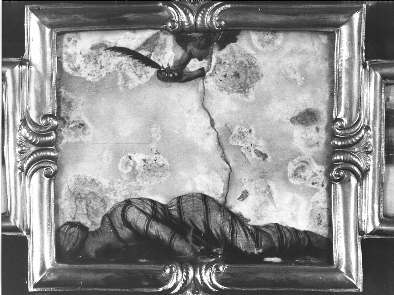 Lastra rettangolare d'onice giallo chiaro su cui è dipinto il corpo della santa supina. In alto un angelo che porge la corona e la palma del martirio. Cornice in rilievo di bronzo dorato con decorazione centrale
