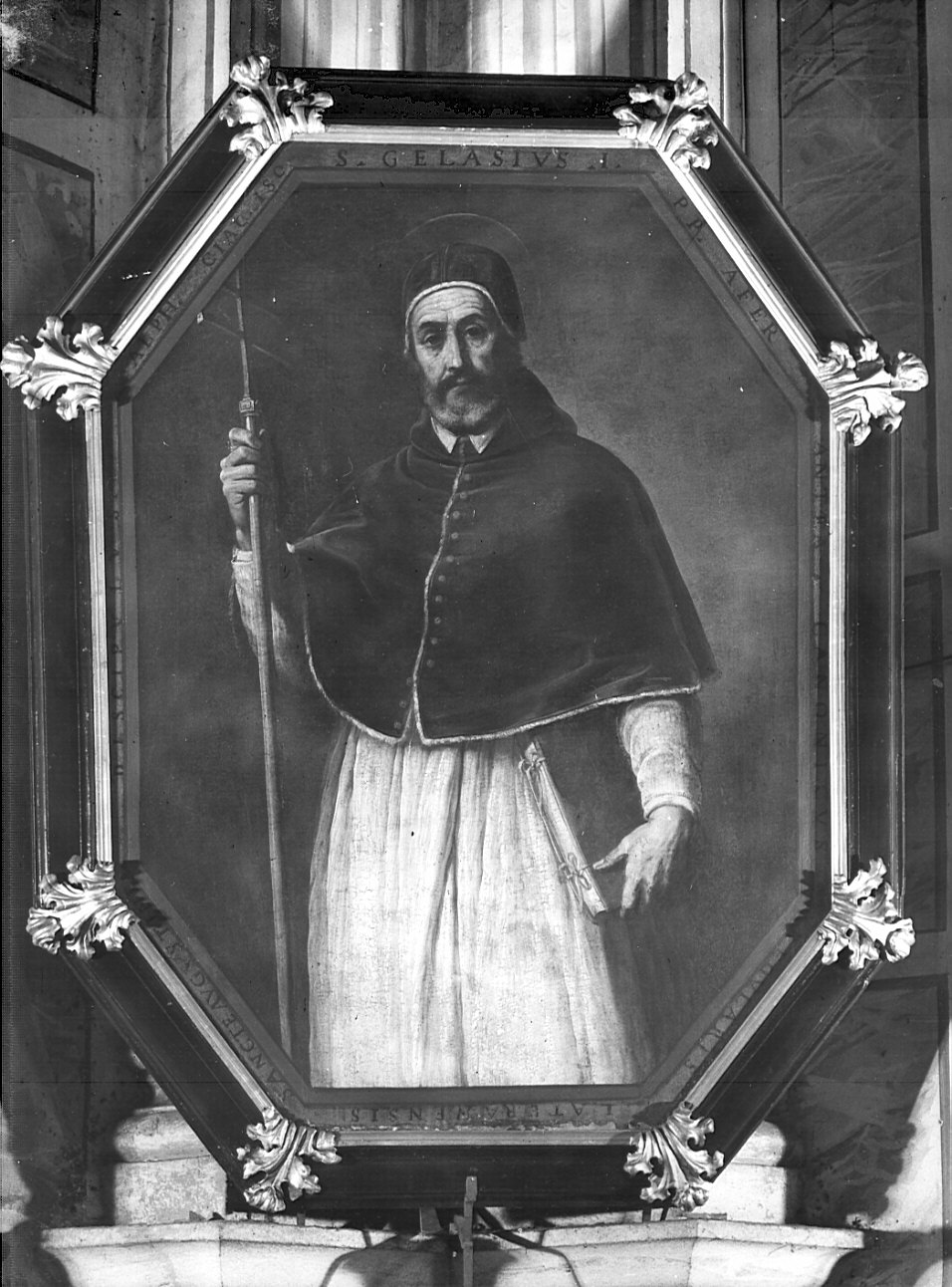 - ISCRIZIONI vicino alla cornice - S. GELASIUS I P.P. AFER, ANTEA CAN. REGULARIS LATERANENSIS SANCTI AUGUSTINI DISCIPULUS ALPH. CIAC. 180 - lettere capitali -
