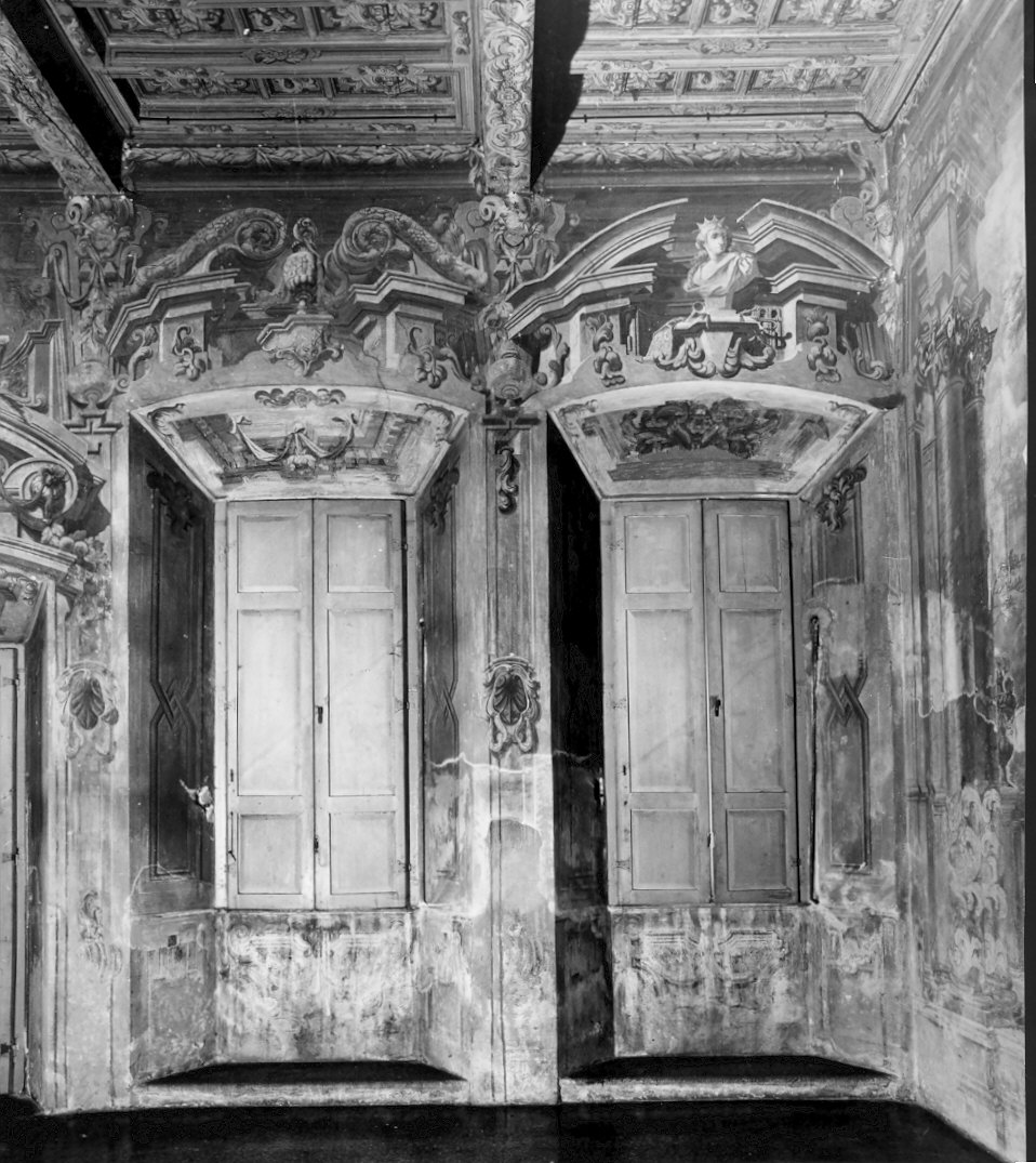 decorazione che si svolge su tutta la parete (interrotta da due finestre)