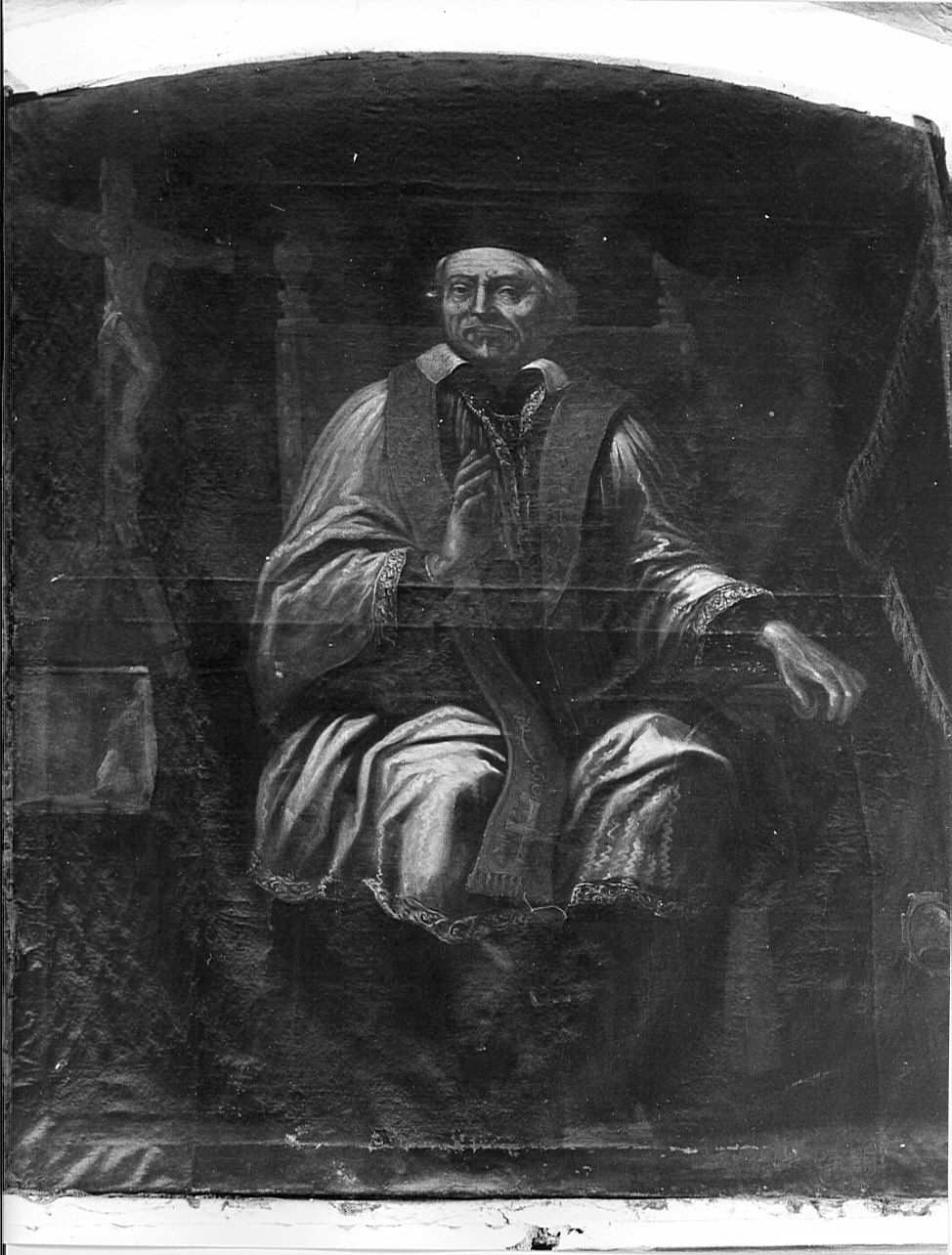 Il dipinto raffigura il personaggio, seduto, vestito di cotta e stola, con berretto ecclesiastico in capo, in atto di benedire. Tinte generalmente abbassate, forse anche per ossidazione del colore e deposito di polvere