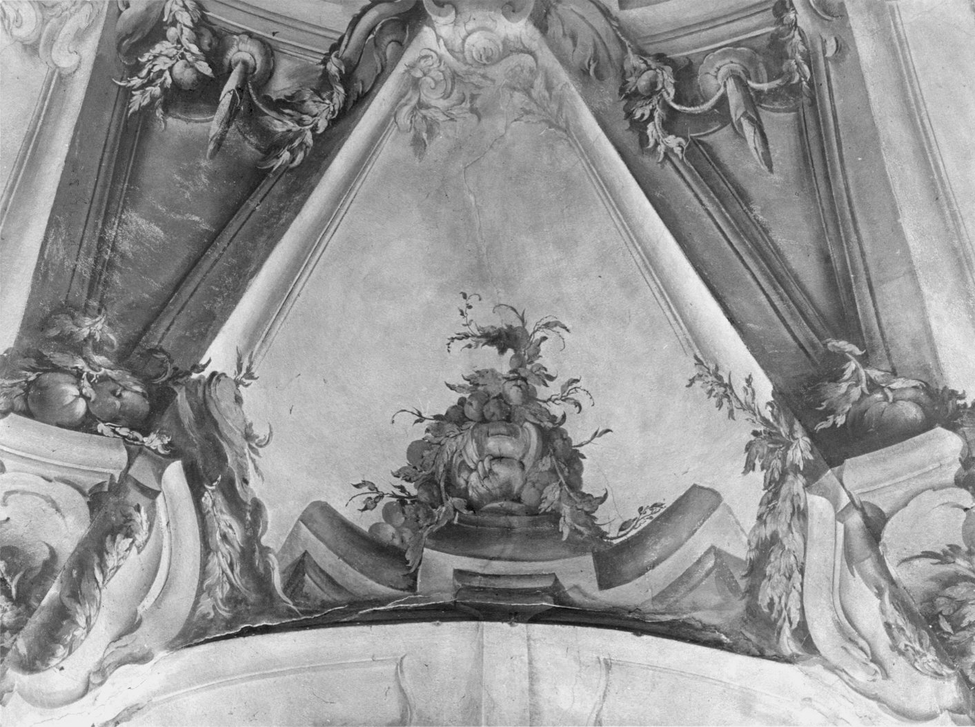 - NOTIZIE STORICO CRITICHE Mentre la struttura del presbiterio, coro e abside, con i tondi centrali, va assegnata ai fratelli Rodari (1498- 1500), l'attribuzione dei dipinti è controversa: ora al comasco Giuseppe Coduri (1720- 1802) (Cenni storici....1901), ripreso dalla Guida del 1979; ora al Vignoli (G. B. Gianoli 1953); più recentemente al quadraturista Giuseppe Porro (Un paese...1983). Si potrebbe anche proporre il nome del luganese Giuseppe Antonio Torricelli (1710- 1808 per la somiglianza con gli affreschi di palazzo Malacrida a Morbegno e di palazzo Salis a Chiavenna. Tali "barocche decorazioni dipinte sulle pareti un secolo e più dopo" (rispetto al 1500), secondo la Guida del 1884, "fanno cattiva compagnia". Si tratta in effetti di un'opera pregevole. Restauri: Qualche restauro fu probabilmente eseguito tra il 1897 e il 1901, quando furono condotti lavori di "rinfrescatura" a tutta la chiesa