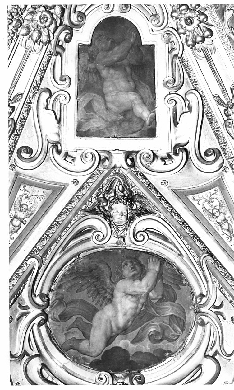 - NOTIZIE STORICO CRITICHE A detta del Delfinone "il volto... fu dipinto a guazzo sul muro da Ambrogio Figino, come anco li tre tondi et tre quadretti rappresentanti diversi atteggiamenti di angeli", ma soltanto la Incoronazione centrale è a fresco. Quanto alla datazione il Delfinone aggiunge che "l'abate Reina governò questo monastero negli anni 1605, 1606, 1607" - è presumibile che a una prima fase appartenga l'affresco e a una seconda gli angeli in cui è più marcato il carattere figiniano