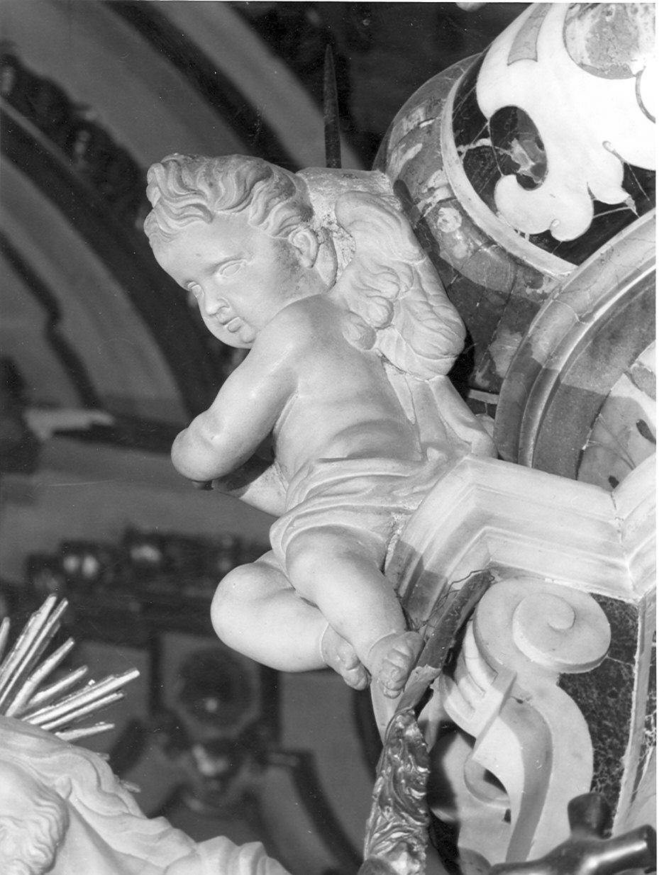 - NOTIZIE STORICO CRITICHE Da documenti originali nell'Archivio parrocchiale di Clusone e dell'Archivio Fantoni di Rovetta si hanno notizie che nel 1700 venne costruita dalla bottega dei Fantoni la mensa dell'altare, nel 1702 alcune figure, il paliotto, due angeli e la statuaria della mensa; nel 1705, 4 gennaio, esiste una nota per le statue di marmo del tabernacolo su commissione di Maddalena Viti (di questo esiste a Rovetta il disegno e il contratto di esecuzione). I lavori di quadratura dell'altare sono opera di Domenico Corbelli da Brescia. Infine nel 1711 Maddalena Viti spede duemila ottocento lire "perchè si adorni il tabernacolo e la tribuna dell'altare maggiore della nostra parrocchiale" delle statue fantoniane. L'opera compare nel regesto del catalogo della mostra sui Fantoni (in preparazione, a cura di G. Ferri Piccaluga, M. Lorandi), conservato presso l'Archivio Fantoni di Rovetta