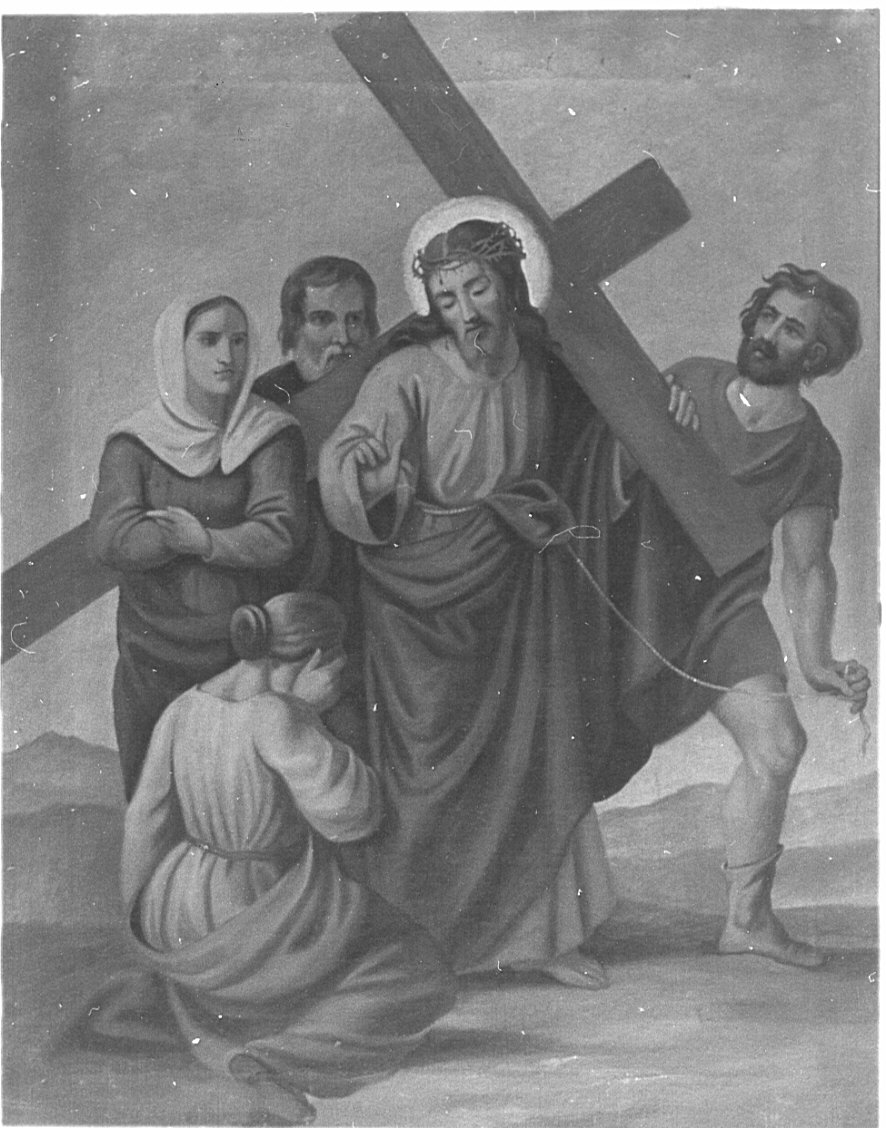 - NOTIZIE STORICO CRITICHE Le quattordici stazioni della Via Crucis, di modesta qualità pittorica, sono esposte sulle pareti della chiesa, lungo la controfacciata e le prime tre campate, e sono assegnabili, per i caratteri stilistici, alla prima metà del sec. XIX