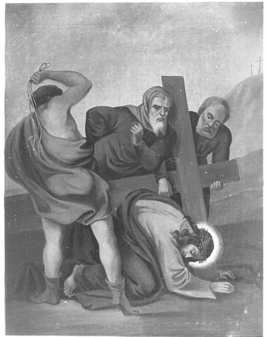 - NOTIZIE STORICO CRITICHE Le quattordici stazioni della Via Crucis, di modesta qualità pittorica, sono esposte sulle pareti della chiesa, lungo la controfacciata e le prime tre campate, e sono assegnabili, per i caratteri stilistici, alla prima metà del sec. XIX