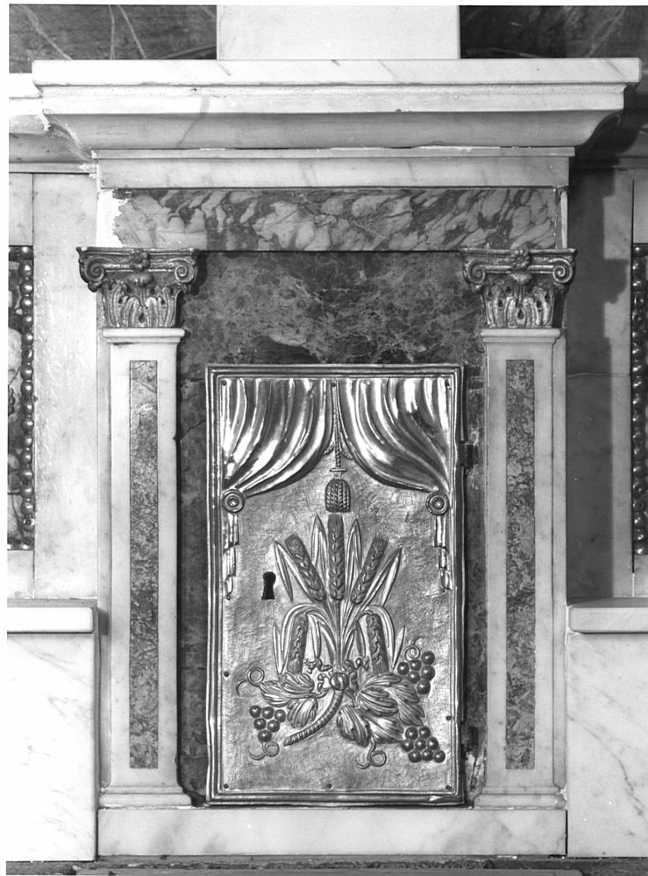 - NOTIZIE STORICO CRITICHE Il tabernacolo va ascritto, come l'intero altare, alla prima metà del XIX secolo. Lo sportello è probabilmente più recente: dovrebbe risalire alla prima metà di questo secolo