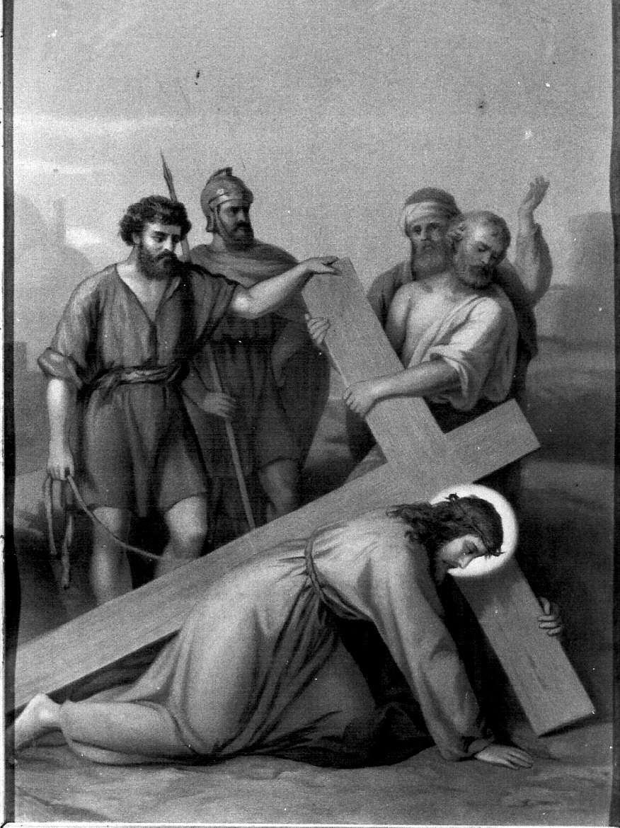 Personaggi: Cristo. Figure maschili: soldato. Oggetti: croce. Paesaggi: paesaggio