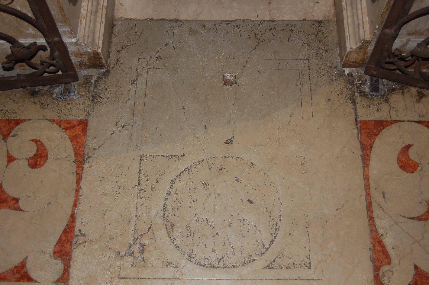 Si tratta di un ovale, contenente forse un'arma gentilizia o un'iscrizione di cui è impossibile la lettura, e inscritto in un rettangolo