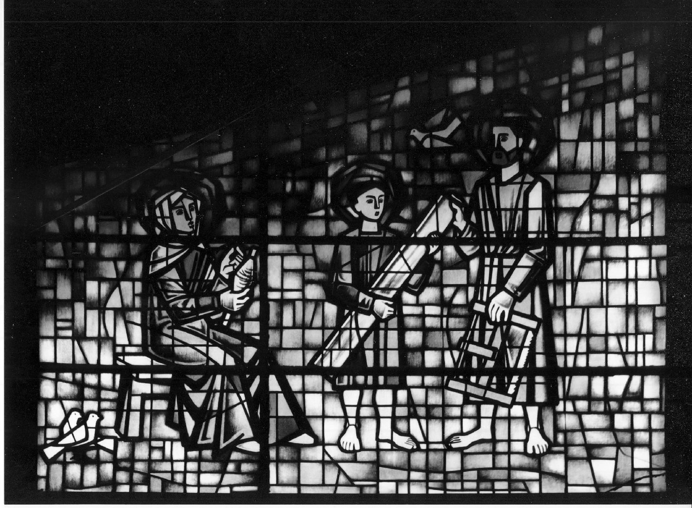 - NOTIZIE STORICO CRITICHE La vetrata raffigurante la Sacra Famiglia viene eseguita subito dopo la costruzione della chiesa (1962) dalla vetreria Bontempi di Brescia (comunicazione orale della sagrestana)