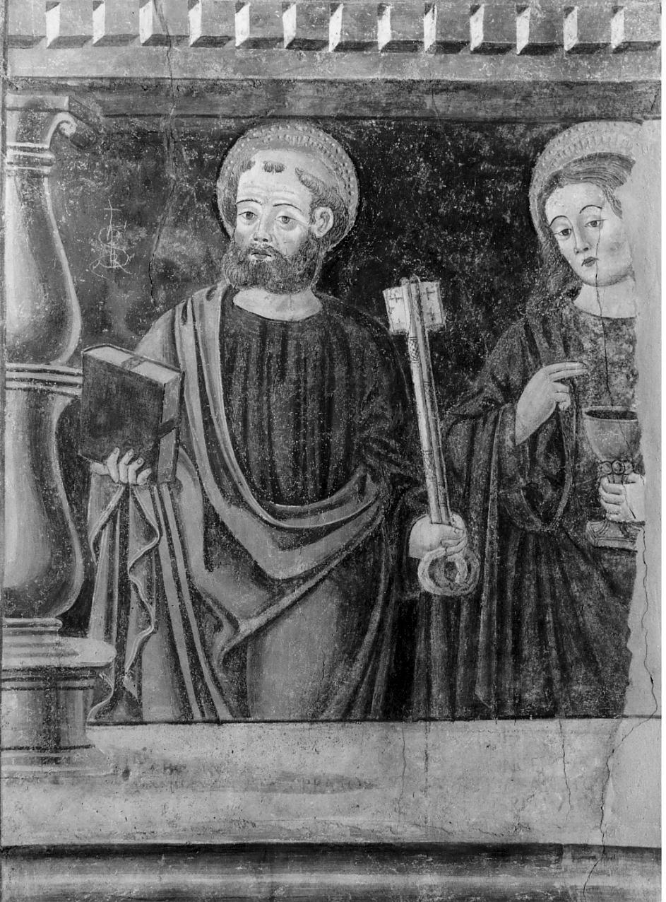 Personaggi: San Pietro; San Giovanni. Attributi: (San Pietro) chiavi; libro; (San Giovanni) calice