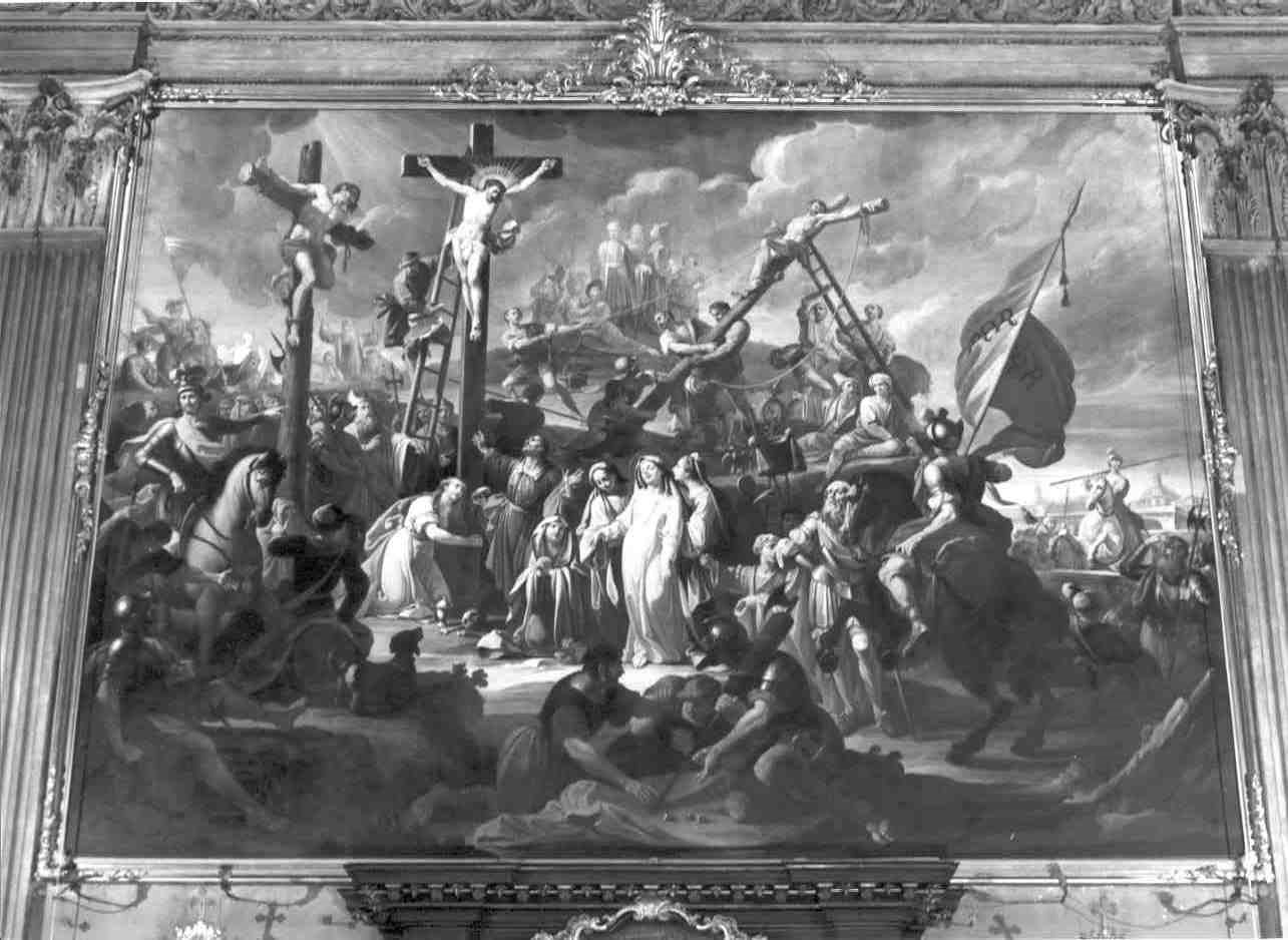 Personaggi: Cristo; ladroni; Maria maddalena; San Giovanni Evangelista; pie donne. Figure: soldati; sacerdoti; uomini; donne. Animali: cane; cavalli. Montagne: Monte Golgota