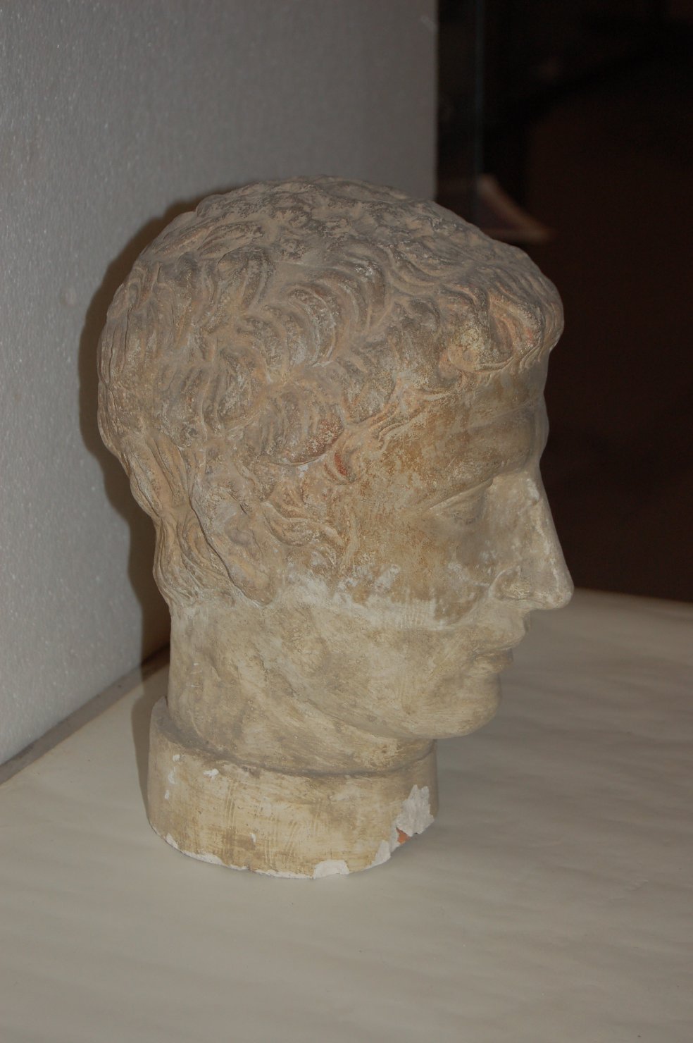 - NOTIZIE STORICO CRITICHE Ritratto virile con fronte attraversata da una ruga, bozze frontali asimmetriche. Guance sporgenti che segnano il punto di frattura. Capelli a frangetta sulla fronte e a piccole ciocche ondulate sul capo. Occhi non lavorati. La parte superiore della testa, assai consunta, potrebbe essere antica. Non è escluso possa anche trattarsi di un falso rinascimentale ispirato a un ritratto giulio-claudio (Tiberio?). E' da escludersi comunque che si tratti di un atleta greco (così Levi). Provenienza ignota. Forse al Museo dell'Accademia nel tardo Settecento. Trasferito con questo al Palazzo degli Studi nel 1784 (circa). Poi a Palazzo Ducale a seguito della Convenzione del 1915 tra Comune di Mantova e Stato Italiano