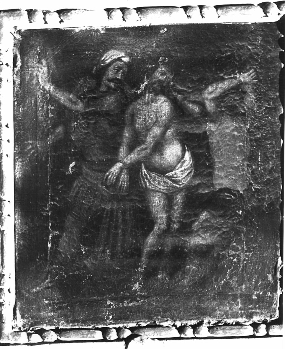Personaggi: Cristo. Figure maschili: sgherri. Armi: flagello