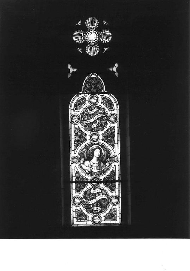 - ISCRIZIONI entro cartiglio nel tondo sopra l'angelo - CANTATE/ OMNO CANTICUM/ NOVUM - lettere capitali - a pennello -