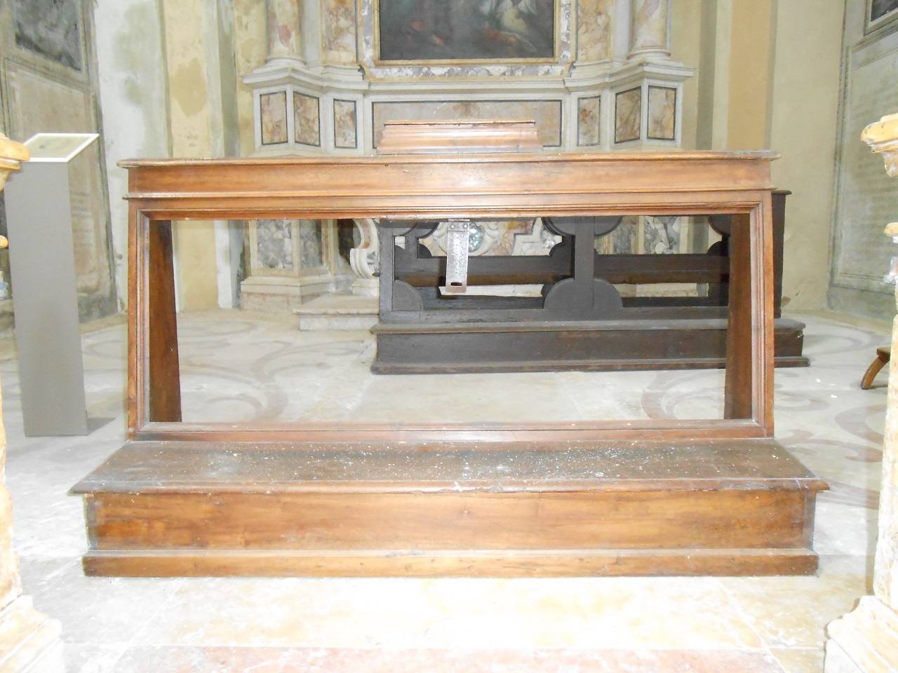 - NOTIZIE STORICO CRITICHE Opera di linee semplici, caratterizzata da modanature e cornici, realizzata in serie da una bottega locale nella seconda metà del secolo XIX. Alla medesima bottega deve essere riferito anche l'inginocchiatoio di analoga tipologia collocato nella cappella di Santa Felicita, NCTN 0300185079 (per il quale si propone il riferimento orizzontale 0300185063)