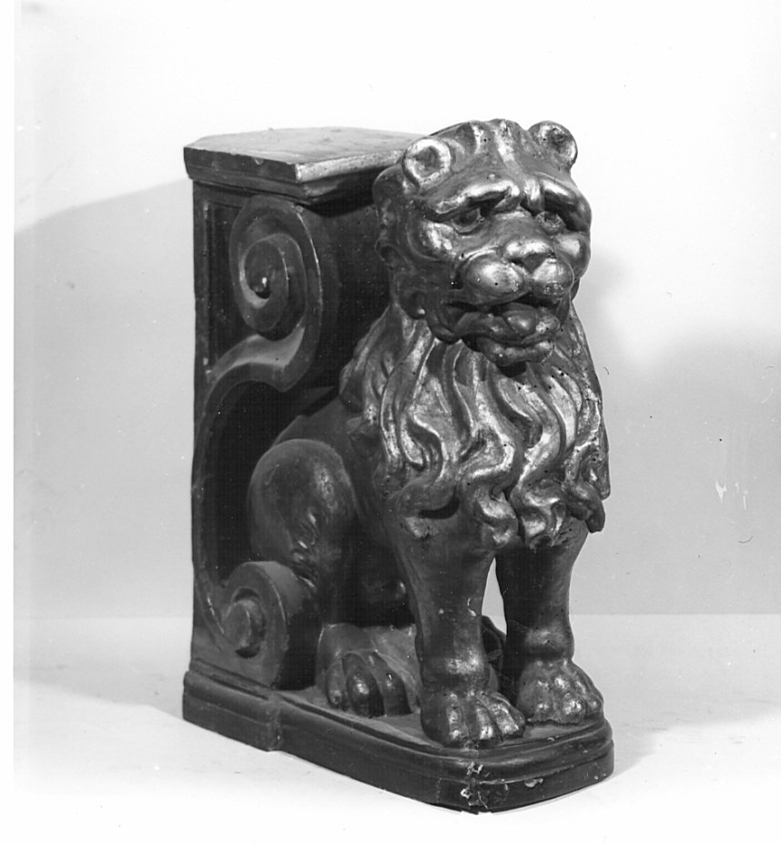 Il leone è addossato ad una voluta terminante ad ampio ricciolo