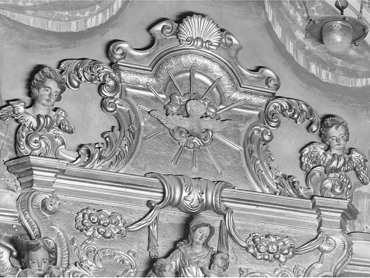 fastigio spezzato ornata sulla parte superiore con teste d'angeli, colomba trafitta