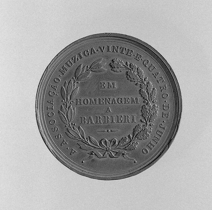 - ISCRIZIONI su entrambe le facce - D= INAUGURACAO / DOS / CONCERTOS CLASSICOS / EM / SEIS DE ABRIL / 1879 / LISBOAR= A. ASSOCIACAO. MUZICA. VINTE. E. QUATTRO. DE. JUNHO.EM / HOMENAGEM / A / BARBIERI / - - lettere capitali - a rilievo -