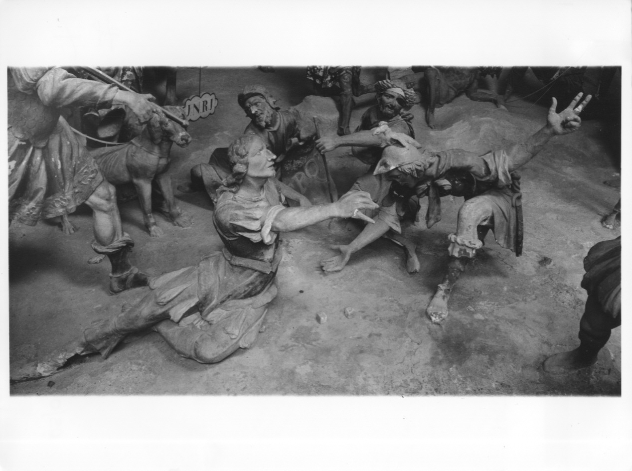 soldato che gioca a dadi per il possesso della tunica di Cristo
