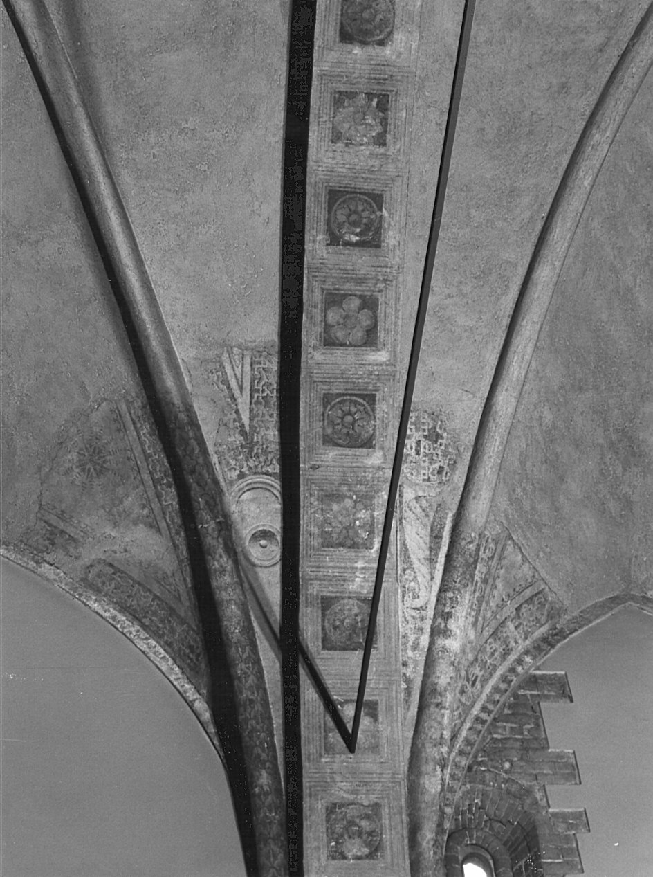 Intradosso di arco dipinto a finti cassettoni con patere ornate di rosette