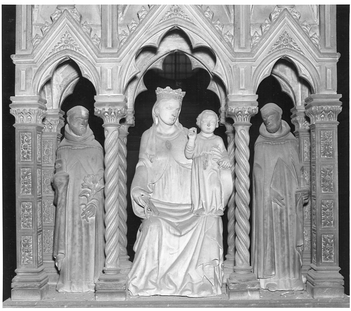 - NOTIZIE STORICO CRITICHE Palese l'intervento diretto del Maestro, soprattutto nella Madonna col Bambino dove l'allungamento del busto della Vergine e la posizione eretta del Bambino costituiscono già altrettante concessioni al diffuso gusto settentrionale e ricordano da vicino per il disegno compositivo e la decorazione gli stessi soggetti collocati sull'arco di Porta Ticinese e su quello di Porta Orientale. Esempio di superba eccellenza formale, con eleganza di cultura, a cui però non corrisponde un risultato lirico di pari levatura (Russoli, 1963).Il corpo di S. Pietro, tolto dal primitivo sarcofago di marmo, apprestatogli subito dopo la morte (1253) dall'arcivescovo Leone da Perego, fu chiuso nella nuova arca dall'arcivescovo Giovanni Visconti nel 1340. Fin dal 1340 l'arca di S. Pietro era collooata tra la quarta e la quinta campata della navata sinistra. L'Allegranza (1784) annota inoltre che "serrò poi all'intorno questo mausoleo il Duca Filippo Maria nel 1424 con un ampio recinto marmoreo di 84 colonnette bianche e rosse e dentro vi fece orifece anche il pavimento di marmi bianchi e neri". G. Visconti aveva separato la testa del Santo dal busto, portandola dapprima in Castello e poi restituendola "in un prezioso tabernacolo" di cristalli che fu custodito in sacrestia fino al 1650, quando il capo fu portato nella cappella Portinari. Solo nel 1736 si provvide a una sistemazione dell'arca, a cui aveva già pensato Cristoforo Lombardi fin dal 1537 (Latuada 1131) quando fu trasportata nella cappella (ma andò distrutto il recinto marmoreo eretto nel 1424). Nel 1815, al termine dei lavori di restauro della cappella fu ancora spostata e dopo la rimozione dell'altare barocco che le stava davanti. Infine smontata durante l'ultima guerra fu ricomposta e ricollcata in situ. Il mausoleo fu commissionato nel 1335; dai Padri Domenicani e fu "disegnato, lavorato e finito da Giovanni di Balduccio 1339 col prezzo di circa duemila ducati d'oro dei quali CCC furono mandati da Ugo IV e Alisia Re e Regina di Cipro; e da un nobile ciprioto; altri C da Matteo Orsini Cardinale Domenicano; L da Giovanni Visconte Vescovo di Novara, che in appresso fu poi arcivescovo di Milano; altri L da Azone Visconte Signor di Milano con sessanta carra di calcina per li fondamenti e per la base sopra cui l'arca doveva innalzarsi, con XX di più per le indorature, e finalmente XXX da un certo Erasmo Boggia Notaio dell'officio di Provvisione di questa città oltre ad altri Milanesi e Forestieri" (Allegranza 1841). Onorando con uno sfarzoso monumeto il martire, il cui culto andava sempre più diffondendosi, i Padri Domenicani intendevano compiere un atto di politica religiosa ed affermazione di potenza dell'ordine che concordava con i programmi dei Visconti, i quali con grandiose iniziative d'opere civiche e di mecenatismo culturale, volevano dimostrare il prestigio della loro Signoria. La realizzazione venne allora affidata nel 1335 a G. B., nativo di Pisa, operante a Milano sembra già dal 1334, scultore di fiducia di Castruccio Castracani, amico di Azzone Visconti, e già conosciuto dai Domenicani per il monumento funebre del 1324-25 per il figlio di Castruccio Castracani, Guarnerio degli Antelminelli e per il pulpito della Chiesa di S. M. del Prato a S. Casciano (1330). Aiutato ma nello stesso tempo condizionato dal contratto che esigeva la fedeltà al modello nicoliano di S. Domenico di Bologna e che imponeva la struttura iconografica secondo i temi agiografici dello Pseudo Dionigi, G. B. realizzò con la collaborazione di aiuti, una ripresa dell'arca bolognese con la sola modifica forse del coronamento del tabernacolo ma con un'adesione al modello nicoliano solo esteriore