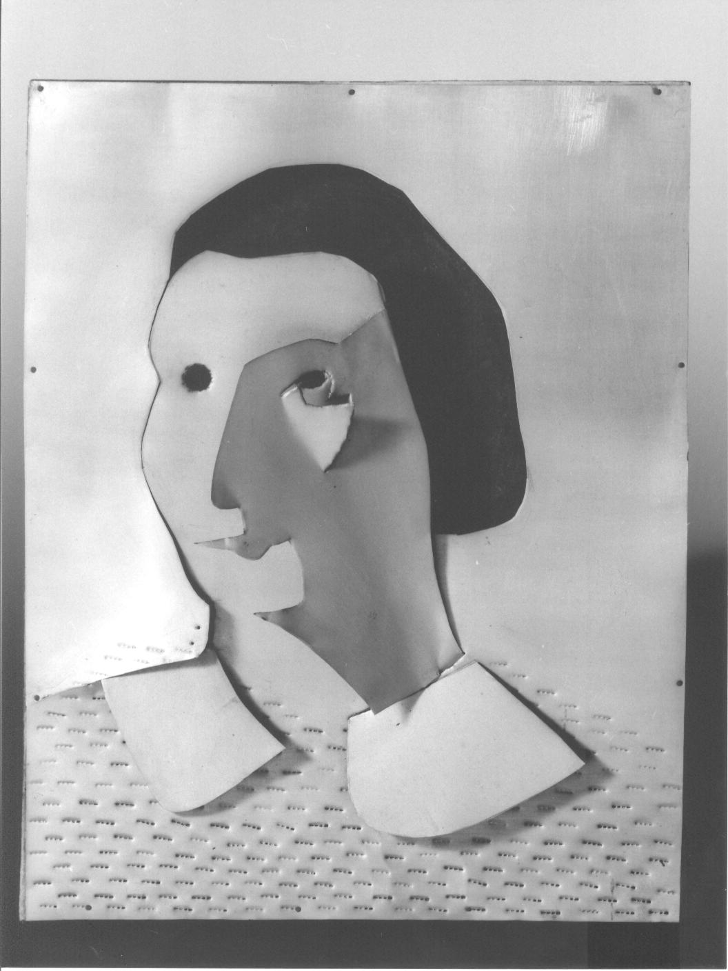 - NOTIZIE STORICO CRITICHE Bibliografia: Elenco delle opere di Regina Cassolo di proprietà del Comune di Mede, a cura di G. Masinari, dattiloscritto, 1976 ca, n.25; L. CARAMEL, a cura di Regina, cat. mostra Sartirana, Milano 1991, p. 146 n. 15, fig. p.48; Le raccolte di Mede possiedono cinque ritratti in alluminio ritagliato e montato su cornice lignea che si possono con certezza dtare al 1931: l'ambito cronologico di questa invenzione è dunque, il medesimo del gruppo di figurette in latta che valsero a Regina l'invito a partecipare al movimento futurista