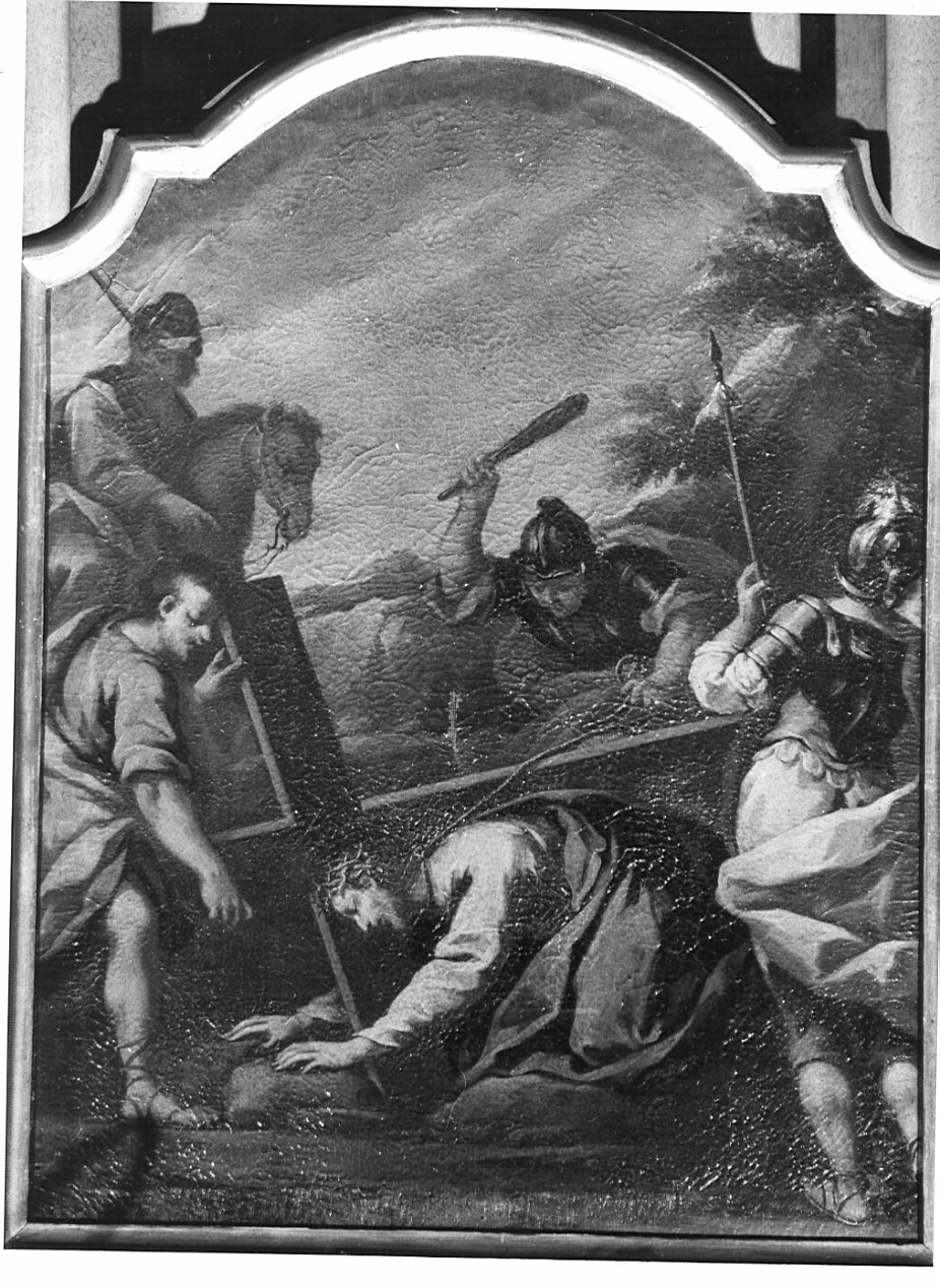 - NOTIZIE STORICO CRITICHE Il dipinto fa parte della Via Crucis e rappresenta la IX stazione. Le 14 tele non sono mai menzionate negli scritti sulla chiesa. Si possono ritenere opera di pittore lombardo della seconda metà del Settecento