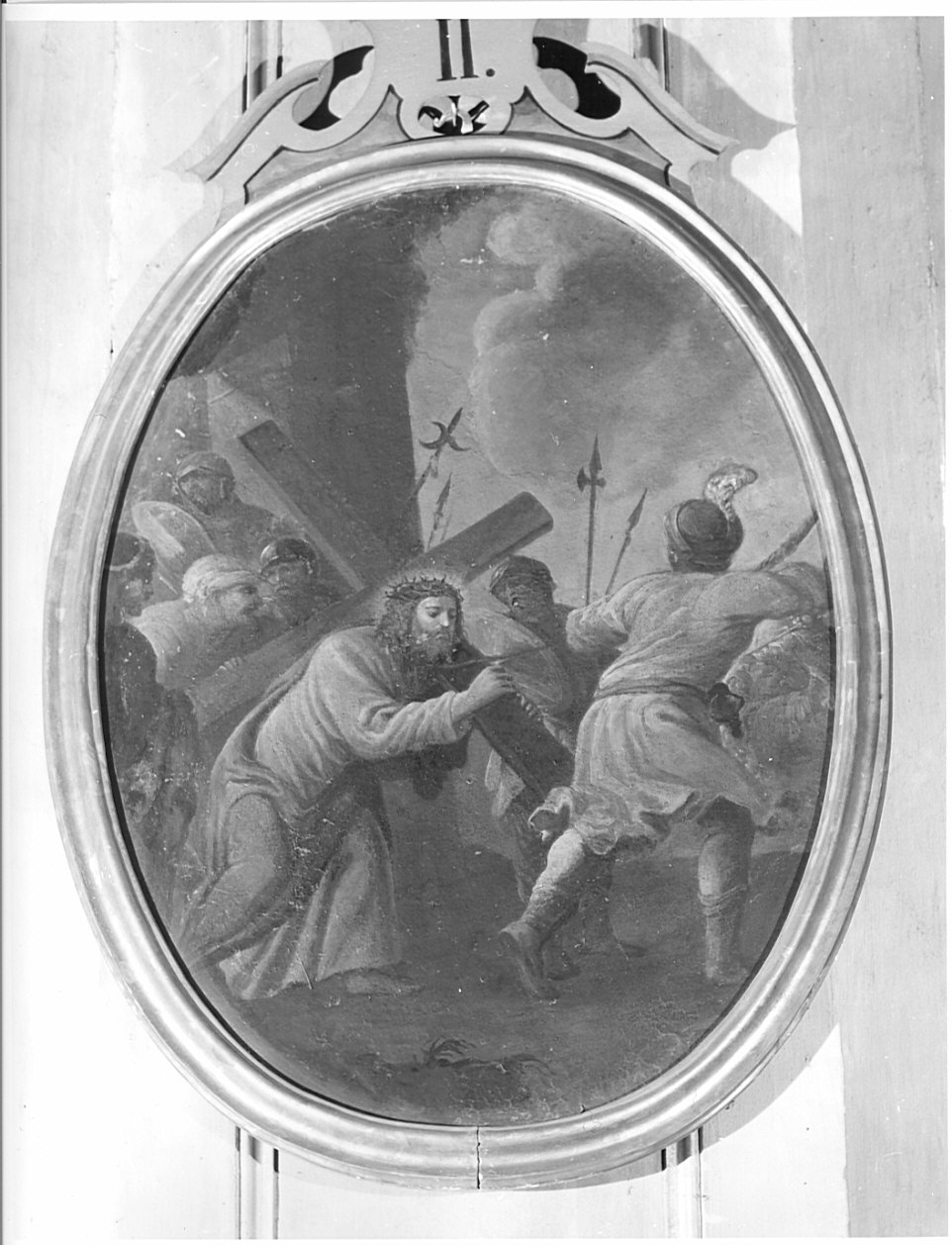 Il dipinto fa parte di una serie formante le stazioni della Via Crucis. Cornice in legno dorato