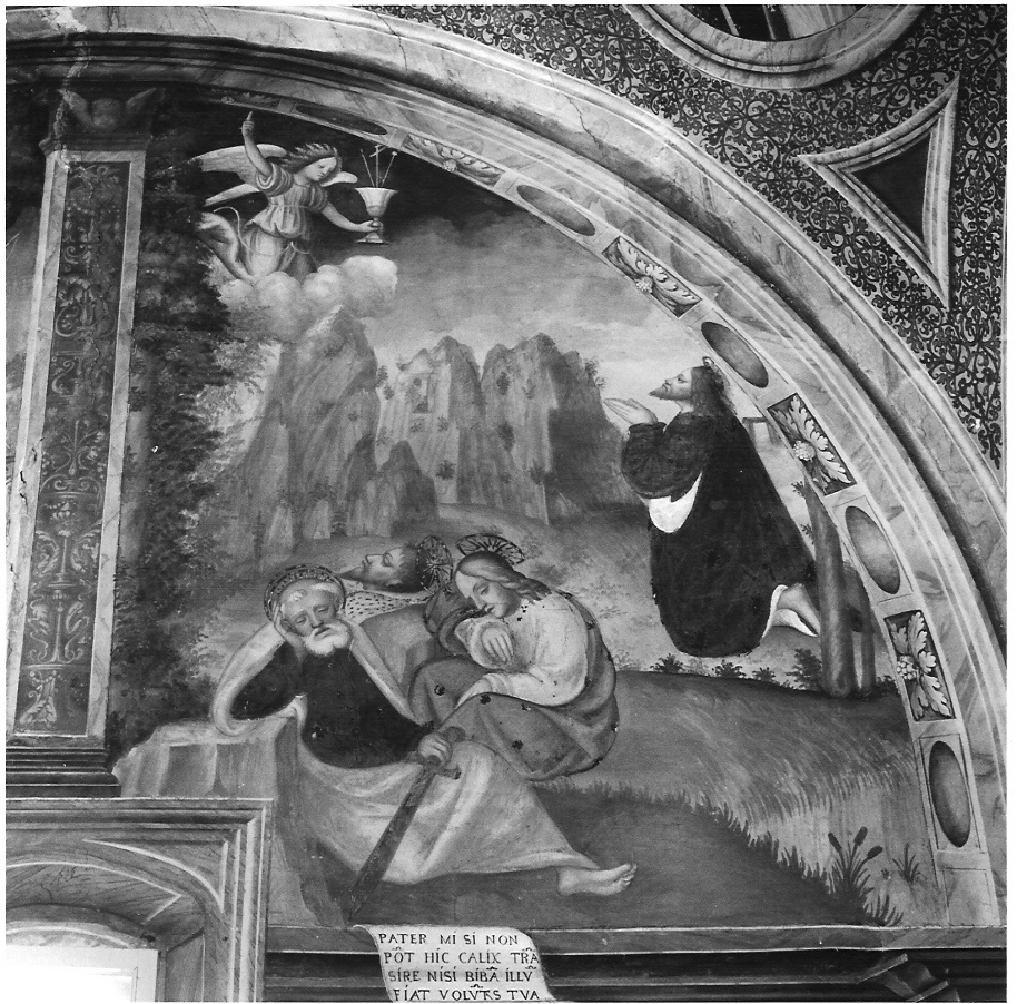 - ISCRIZIONI Entro cartiglio sopra al riquadro - PATER MI SI NON POT HIC CALIX TRASIRE NISI BIBA ILLU FIAT VOLUNTAS TUA - lettere capitali - a pennello - latino