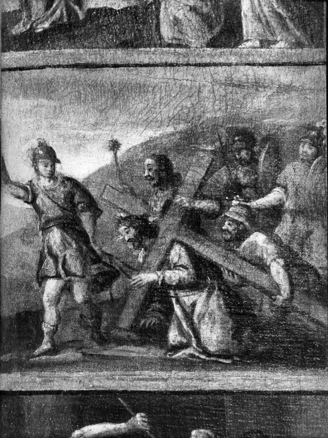 Personaggi: Gesù Cristo. Figure: soldati; carnefici. Oggetti: croce