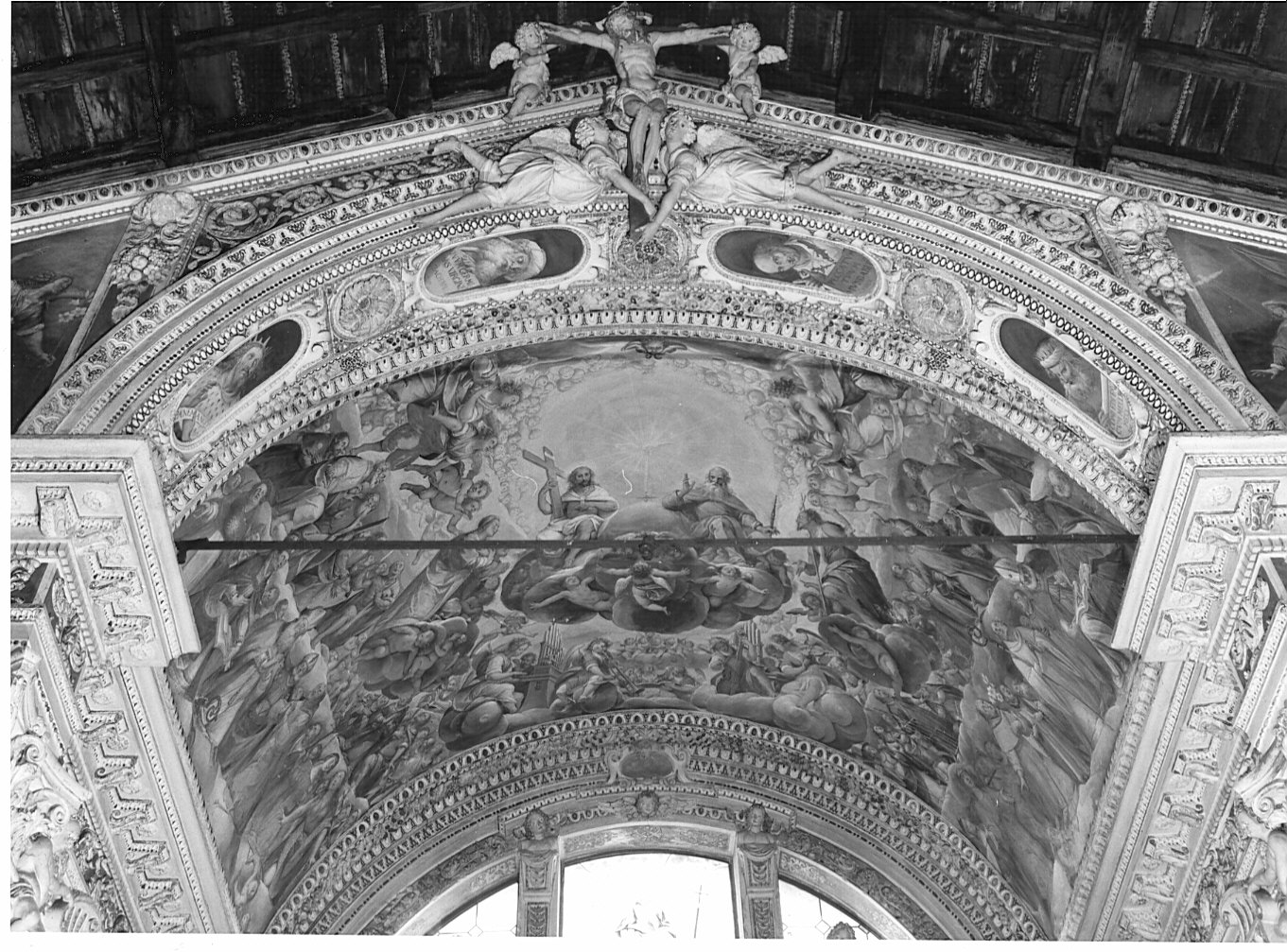 Decorazione pittorica del sottarco costituita da quattro cornici ovali in stucco che racchiudono le raffigurazioni di quattro profeti