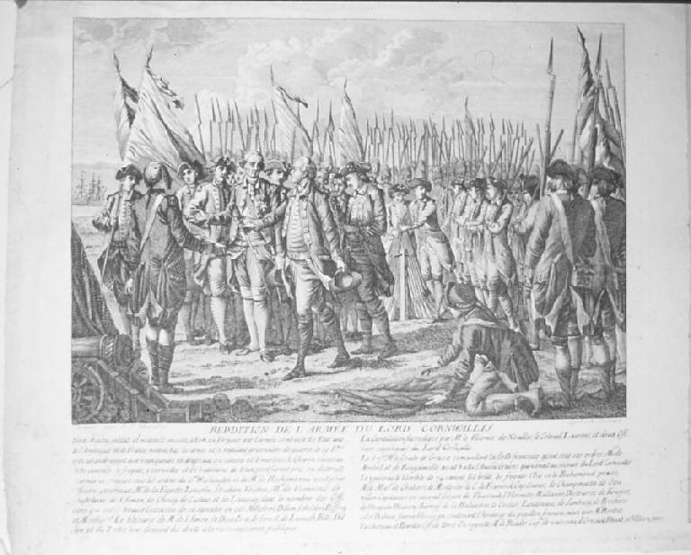 Personaggi: Lord Cornwallis. Figure: soldati. Armi: baionette; cannone. Oggetti: bandiere