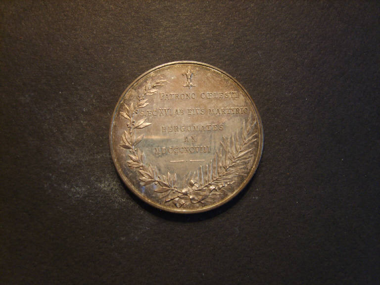 Personaggi: sant'Alessandro. Figure: angelo. Vegetali: ramo d'alloro; ramo d'ulivo