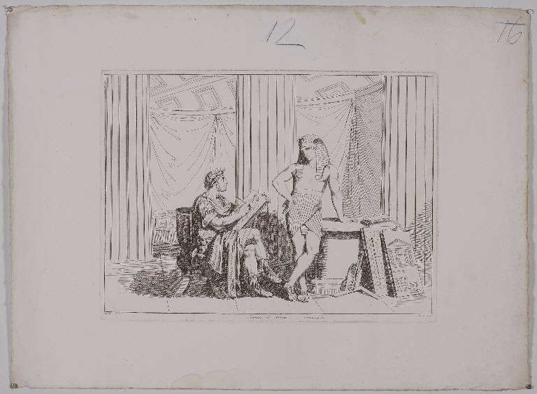 Personaggi: Adriano; Antinoo. Abbigliamento. Oggetti: squadra; compasso; dipinti; penna. Mobilia: poltrona. Interno
