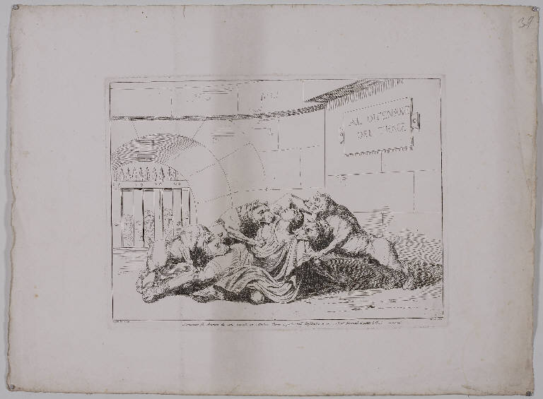 Interno: prigione. Figure: uomo; soldati. Animali: cani