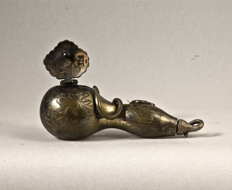 Completo da scrittura (yatate) a forma di zucca hyotan, costituito da pennello estraibile e calamaio. Decorazione incisa con foglie di paulonia (kiri)