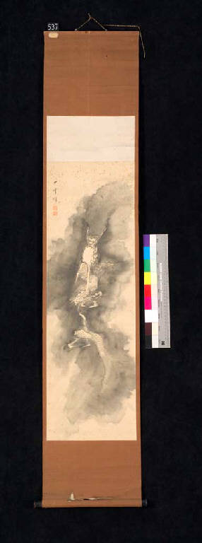Il dipinto, nel formato del rotolo verticale da appendere (kakemono), è stato eseguito a inchiostro di china su carta. Raffigura un drago (ryu) che vola tra le nuvole. Ha tradizionale cornice in seta con bacchette in legno