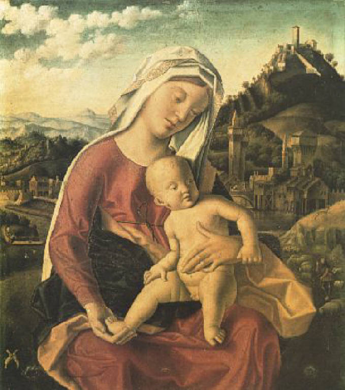 - NOTIZIE STORICO CRITICHE Opera sacra a destinazione privata. Il castello sul fondo è stato identificato con quello di Gradara. Il supporto è in legno di rovere. L'opera, già posseduta dal bresciano Paolo Brognoli (1763-1835), fu acquistata da Guglielmo Lochis nel 1841(G. Brambilla Ranise, 2007; G. Valagussa in "I grandi veneti", 2010)