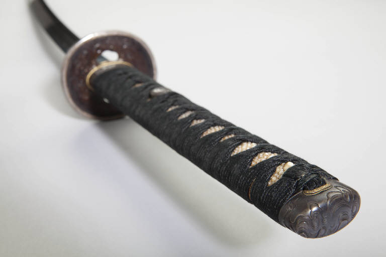 - NOTIZIE STORICO CRITICHE Informazioni in Museo: "Scuola Yamashiro. La grana è interessante, ma presenta un piccolo difetto. Sul mune è presente il segno di un colpo. Patina nera e lama consumata fanno pensare ad un'arma più antica."