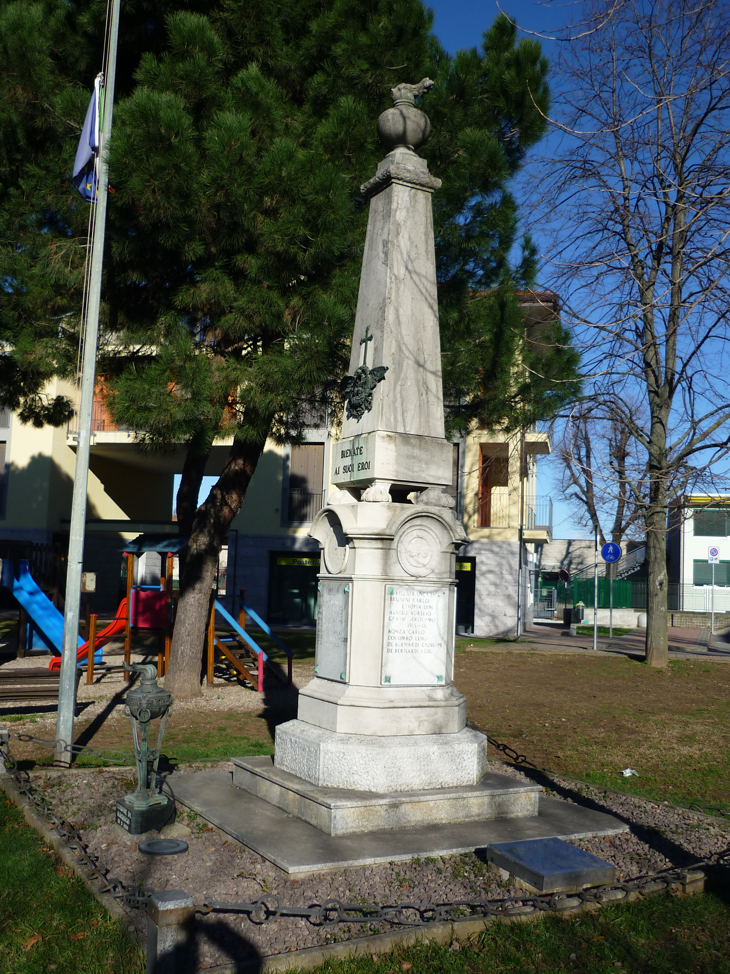 - NOTIZIE STORICO CRITICHE (Lotti Paolo, Magnago-Bienate 1820-1947: alla riscoperta del passato - Lonate Pozzolo 2008; Cazzani Alberta, I Monumenti e i Giardini celebrativi della Grande Guerra in Lombardia- Il censimento per le province di Brescia, Milano e Monza Brianza - 2012 Paolo Gaspari Editore). La lampada votiva posta davanti al monumento risale al 1969 (Cfr. iscrizione)